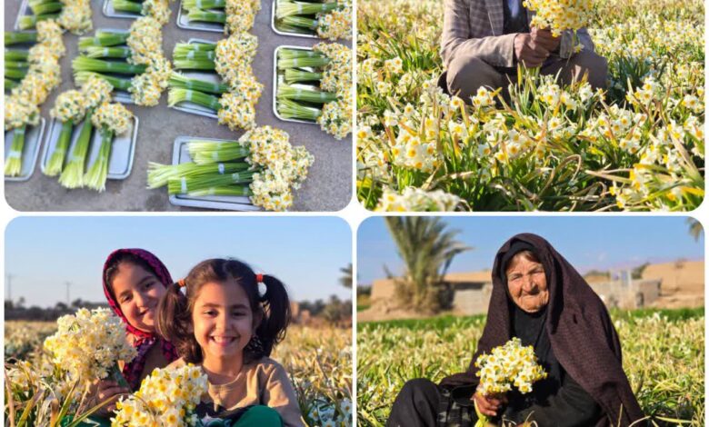 برداشت گل نرگس از مزارع روستا کریت